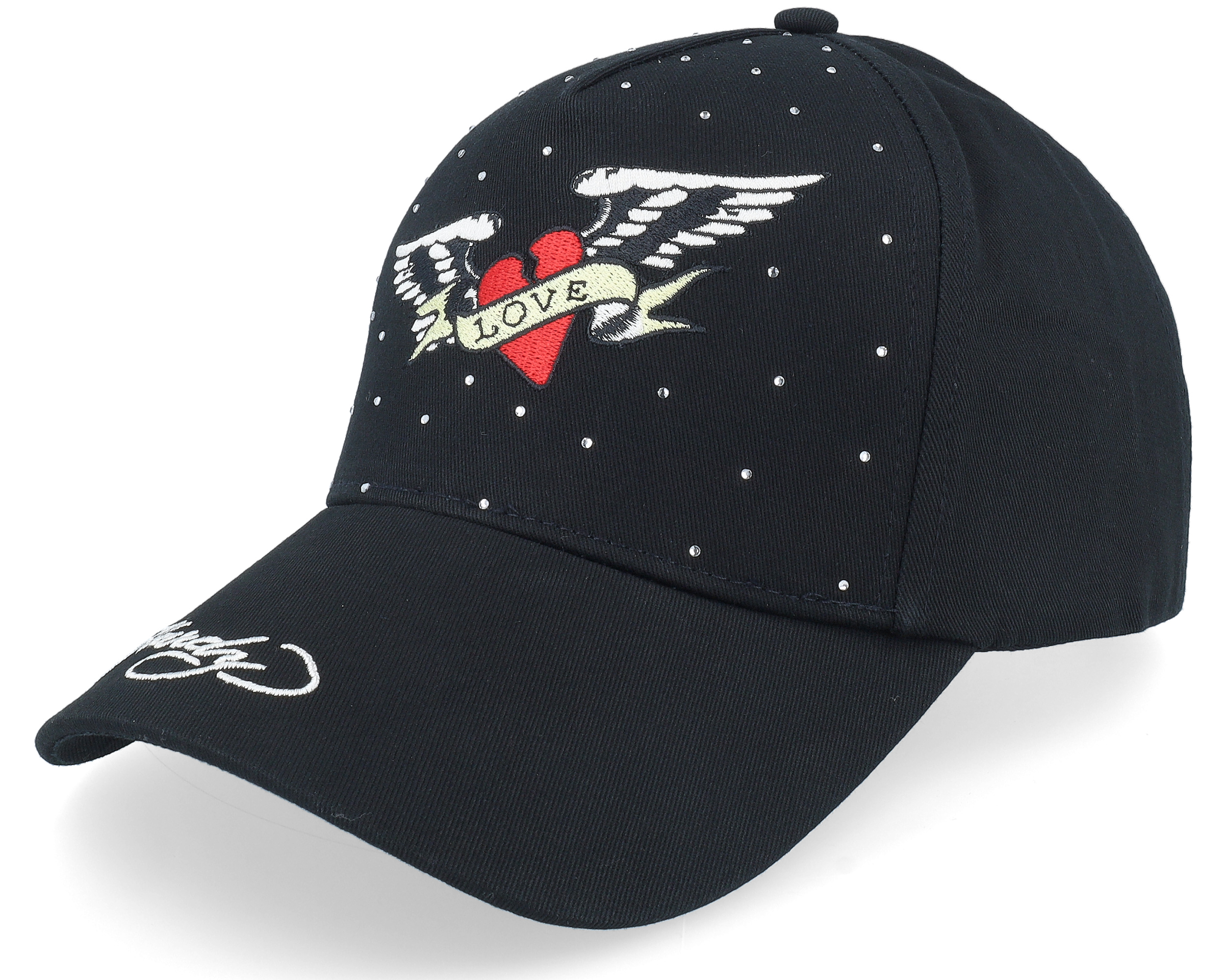 Ed Hardy Love Diamante Twill Front Black A-Frame Trucker