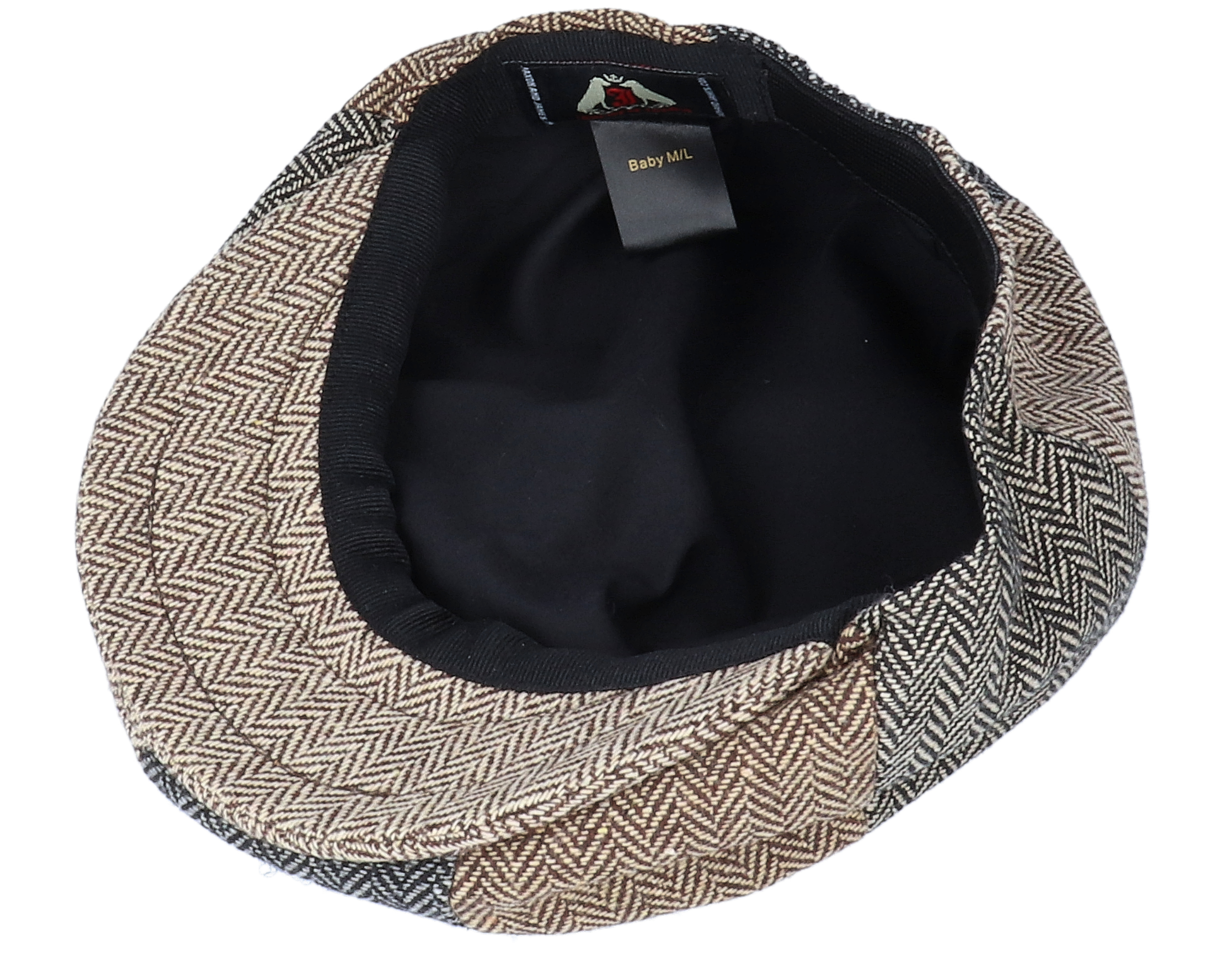 Kids Herringbone Infant Patch Newsboy Beige/Black/Brown Flat Cap