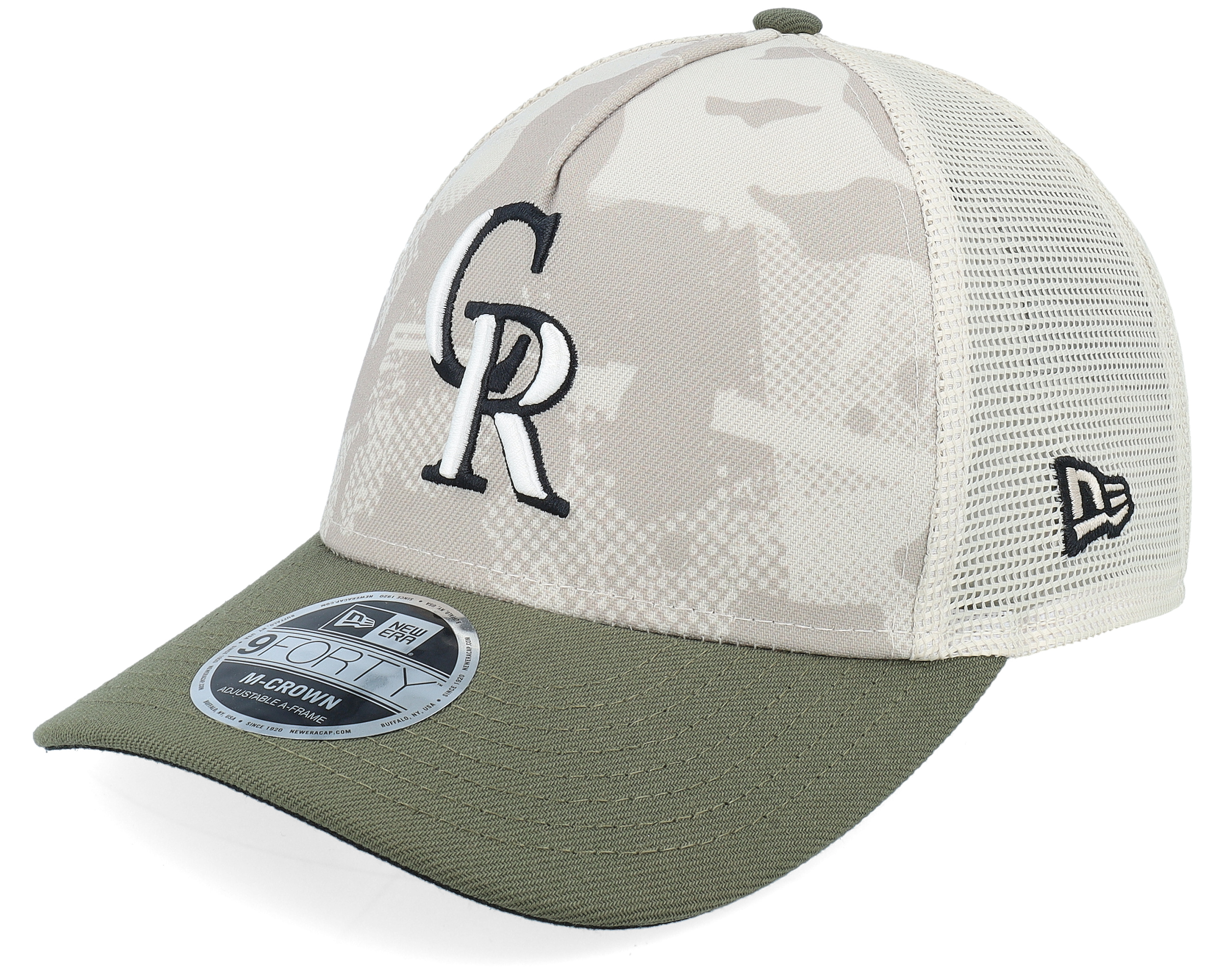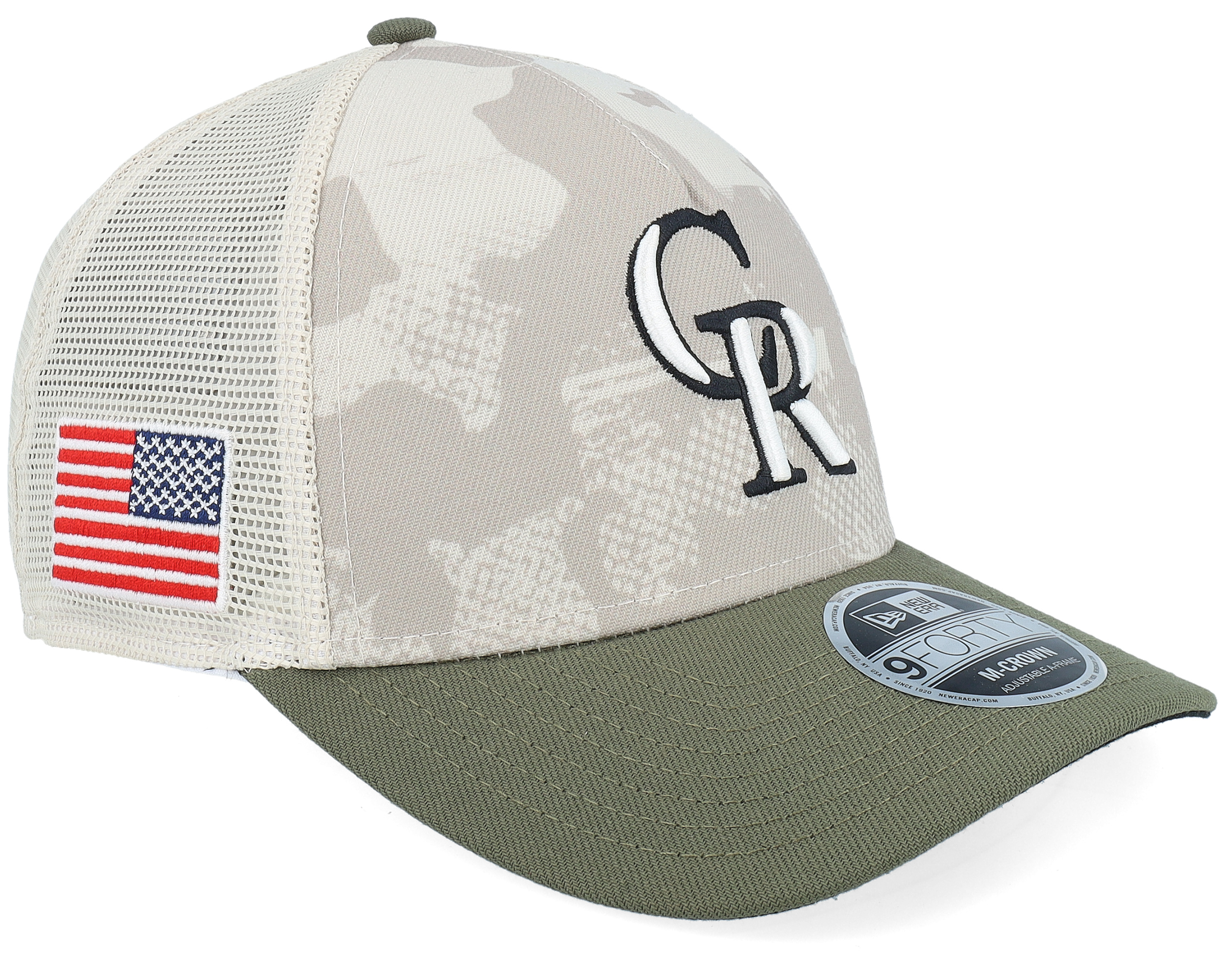 Colorado Rockies MLB Armed Forces Day 9FORTY Mc Stone/Olive A-frame Trucker