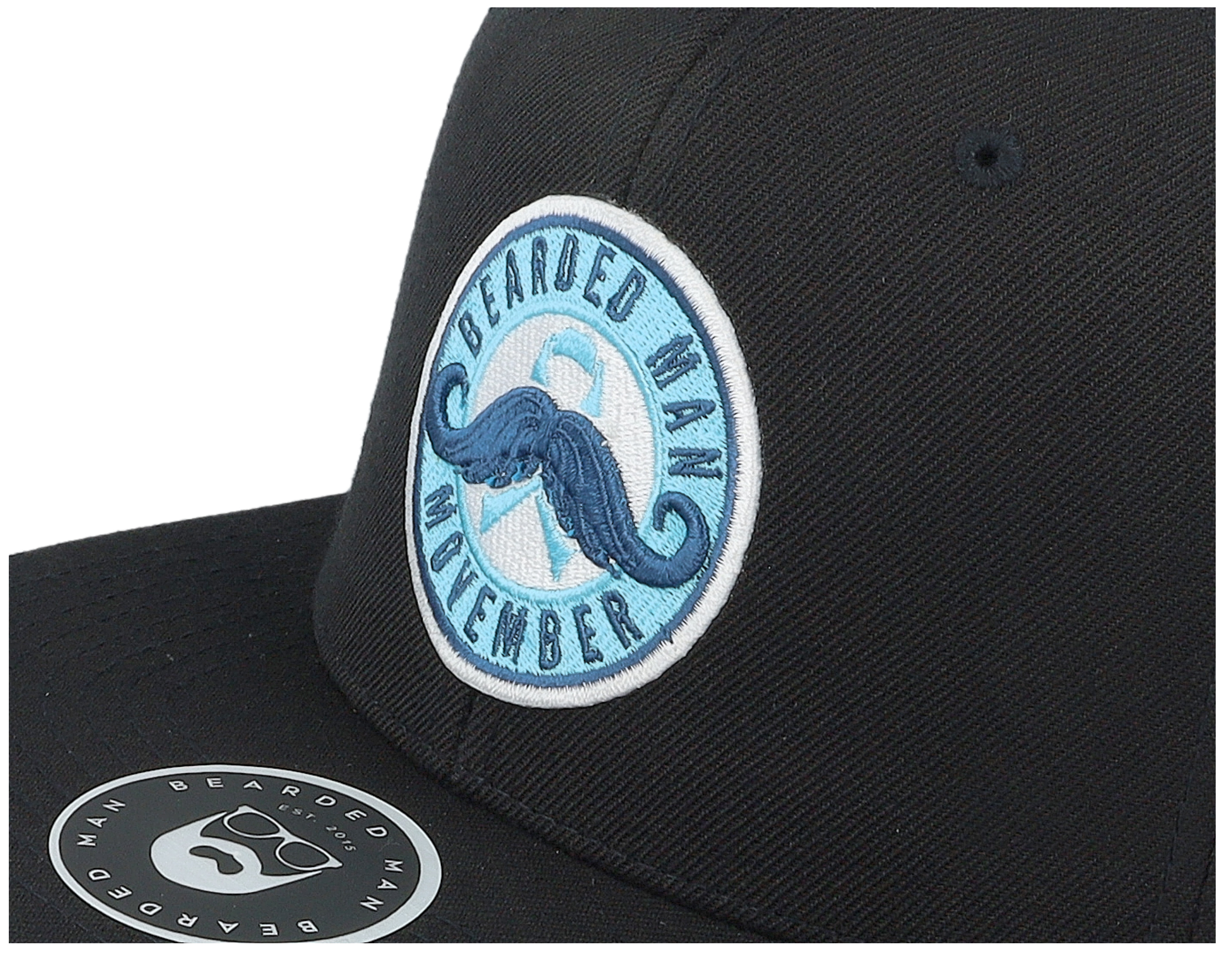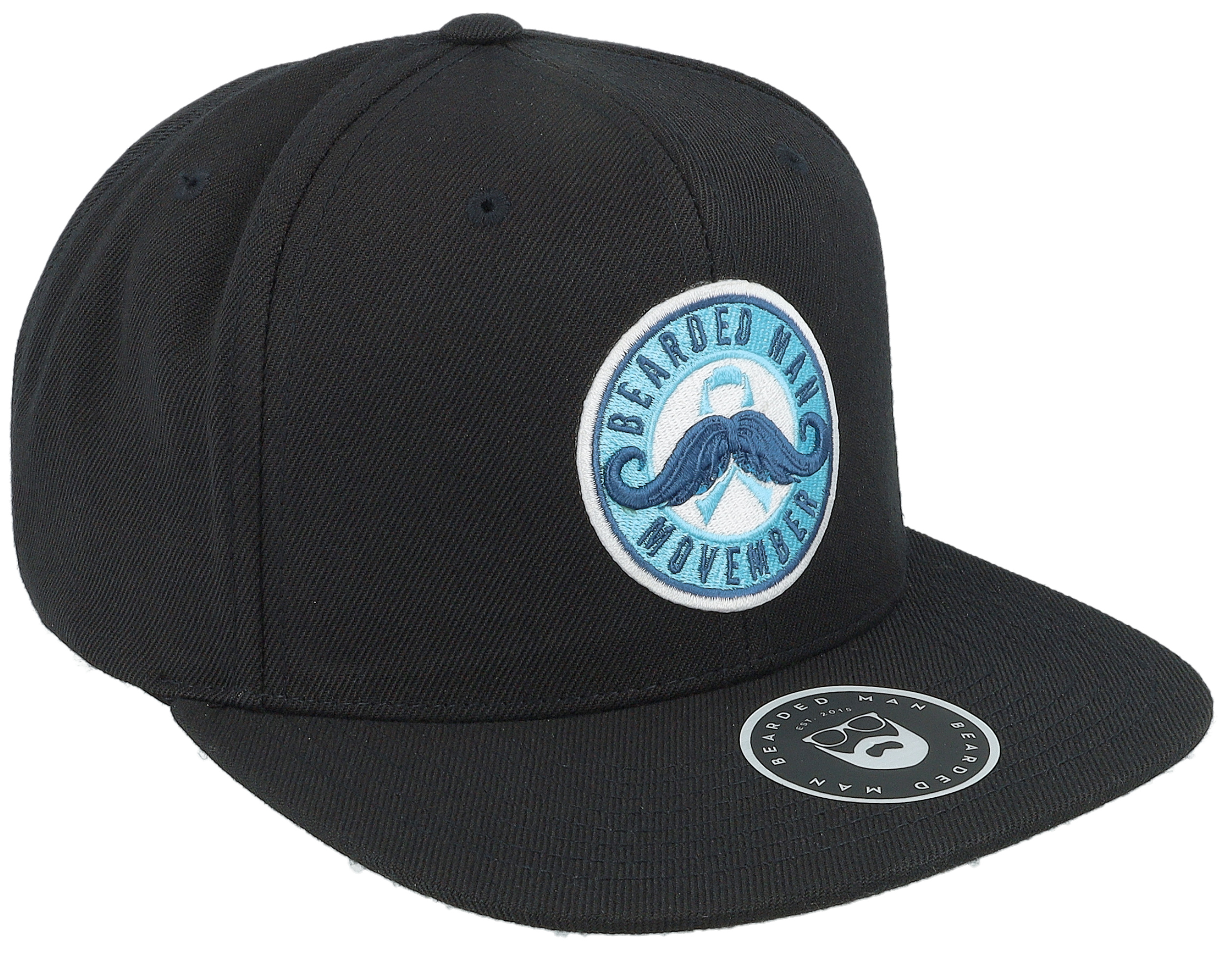 Movember Ribbon Moustache Patch Black Snapback